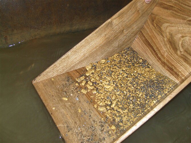 沙金淘金設備有很多種類型,有廣西沙金溜槽,有新型沙金溜,有移動選金機,還有振動淘金機,隨著技術的發展。沙金淘金設備無論從回收率上還是產量上,都是有大的發展的。在沙金礦開采過程中設備是占主要的位置的,有很重要的作用。沙金設備的回收率和產量決定了收益,所以說在沙金礦的開采者設備是起到重要作用的。廣西大溜槽